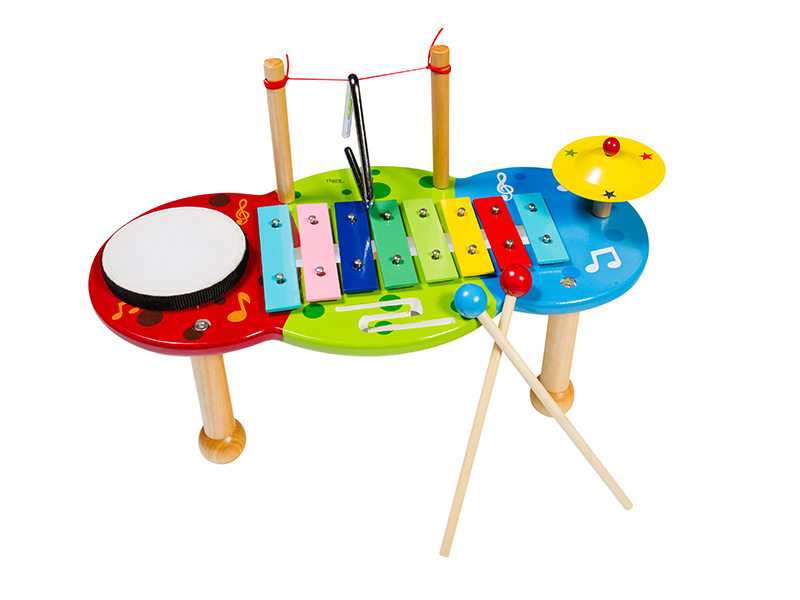 Детская перкуссионная установка представляет собой набор простых ударных музыкальных инструментов.