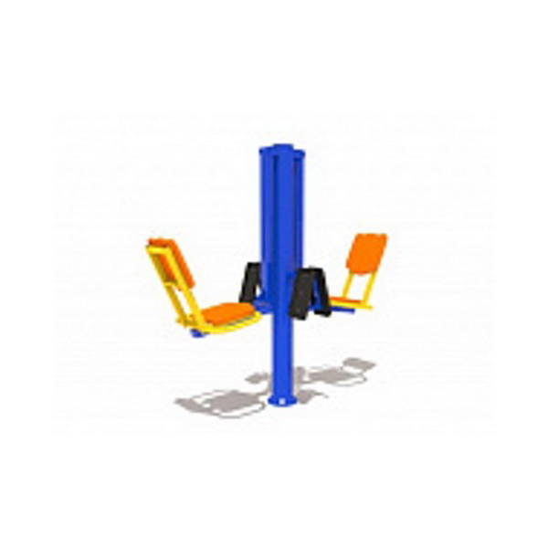 Назначение: Способствует укреплению мышц ног и коленных суставов. Тренажер расчитан на 2-х пользователей. Несущая стойка тренажера выполнена из металлической трубы сечением Ø 110 мм, бетонируется в землю на 0,6м . Все шарнирные узлы имеют подшипники скольжения закрытого типа. Опоры для ног и сидение изготовлены из ударопрочного и морозостойкого пластика. Все жесткие соединения выполнены при помощи электросварки. Металлические элементы окрашены порошковыми красками. Крепежные элементы и места срезов труб защищены пластиковыми заглушками.