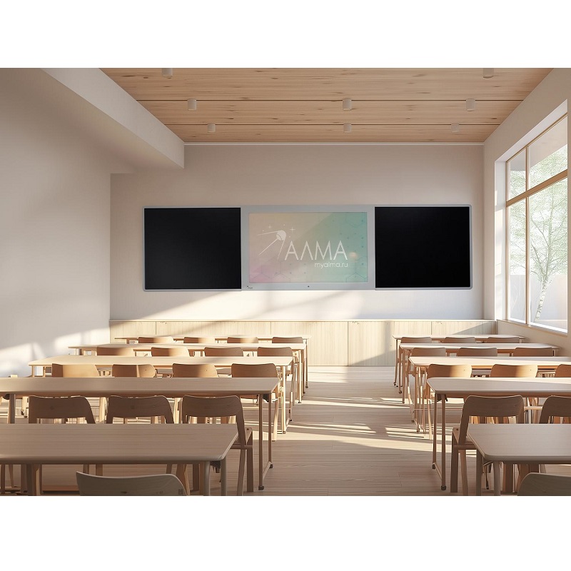 Современная школьная доска, объединяющая инновационные технологии и традиционные инструменты преподавания. В центре интерактивная сенсорная панель с multi-touch (до 10 одновременных касаний), по бокам - пишущая магнитно-меловая поверхность. Подходит для оснащения школ, учреждений культуры, детских кружков, развивающих и коррекционных центров для детей.