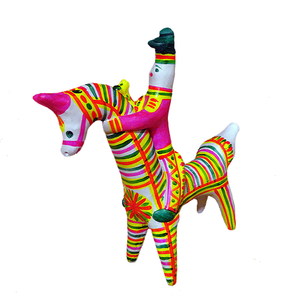 Филимоновская игрушка «Всадник» относится к древнерусскому прикладному художественному промыслу, которому более 700 лет, а по данным археологов и более 1000 лет. В основном многие поделки представляют собой свистульки: собачки, кошки, петухи, коровы, всадники, барыни. Для фигурок, будь то животное или люди, характерны: монолитность, примитивность (отсутствие мелких деталей), тонкая талия, длинная шея. Роспись создавалась, и до сих пор наносится чередованием трех цветов - малиновым, зелёным, желтым. Несмотря на это игрушки выглядят ярко, весело и задорно.
