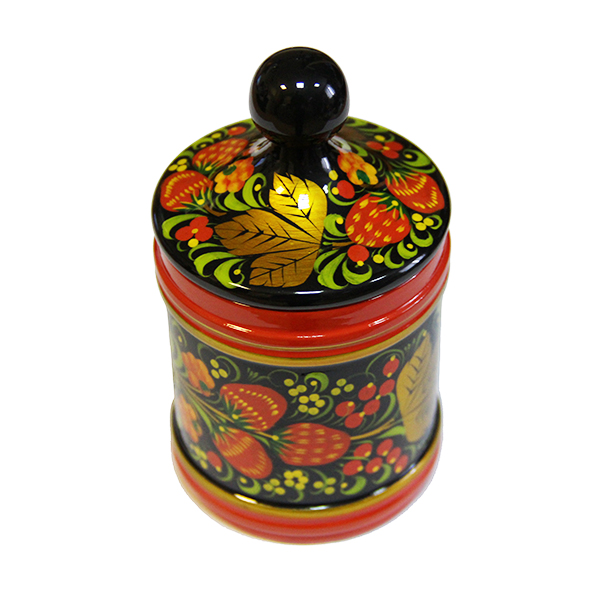 Деревянная кадочка с крышкой выполнена из дерева и украшена Хохломской росписью.