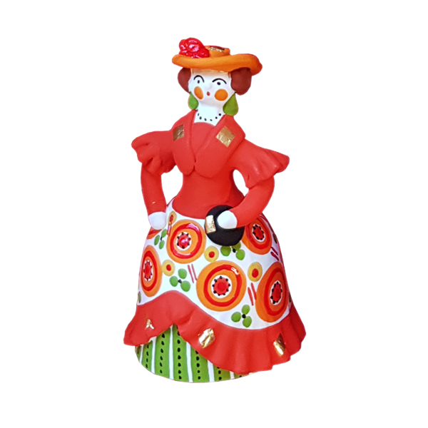 - Вятскую игрушку “Барыню”. Барыня вылеплена из глины и “одета” в цветастый наряд, украшенный дымковской росписью.