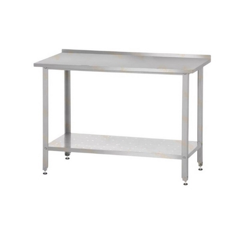 Стол производственный СПРб 860х1000х600 «Base» с перфорированной полкой (с бортом) применяется на профессиональной кухне для хранения или разделки продуктов.