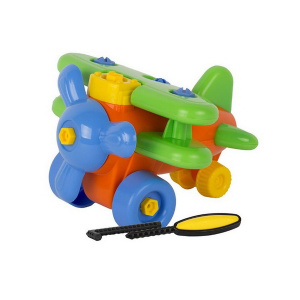 Конструктор «Самолёт» состоит из 23 деталей. В комплекте отвертка, шестигранник и схема сборки.