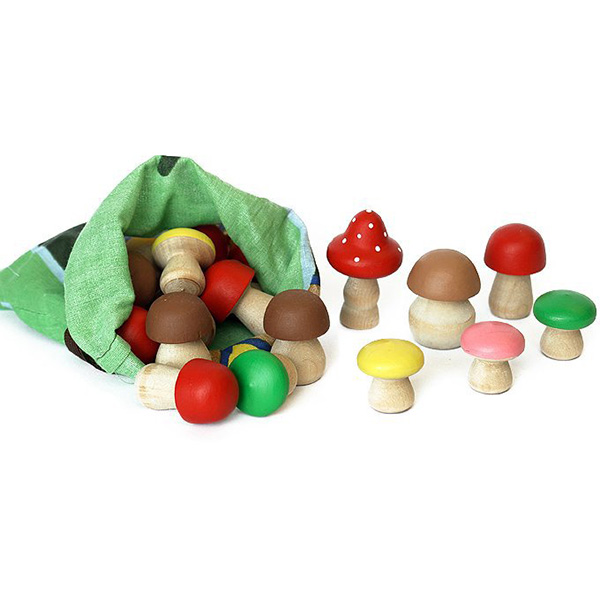 Такая полезная игрушка поможет малышам научиться полагаться на тактильное восприятие. Вариантов игры с ней – великое множество. Малыши должны запускать ручку в мешочек, а дальше – как подскажет фантазия: можно угадывать, какую фигурку ты держишь в руке, можно не глядя подбирать пары, можно учиться описывать предметы или сортировать их наощупь. Кроме того, грибочки можно использовать как счетный материал или демонстрационную модель для рассказов о флоре и фауне лесов.