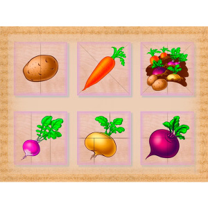 Нужно собрать карточку порезанную на несколько частей разными способами. Каждая картинка размером 10х10см.