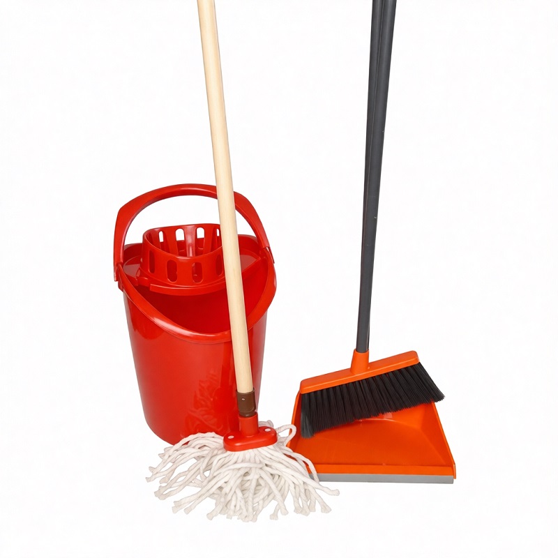 В комплекте: швабра – 1 шт., ведро с насадкой для отжима – 1 шт., щетка для подметания пола – 1 шт., совок на длинной ручке – 1 шт., руководство по эксплуатации – 1 шт.