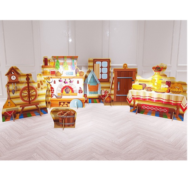 Театральная композиция "Русский быт" выполнена из МДФ, с нанесением полноцветного рисунка с двух сторон. Композиция имеет устойчивые подножки.