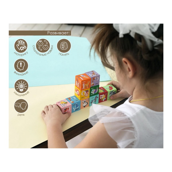 Набор "Английская азбука на деревянных кубиках" изготовлен из дерева, тщательно обработан и ошлифован, покрыт безопасными водорастворимыми красками.